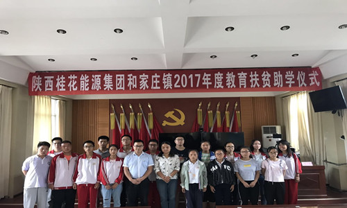 8月21日,和家庄镇召开陕西桂花能源集团2017年教育扶贫活动,参加会议的有桂花能源公司副总张正明,受赠学生,