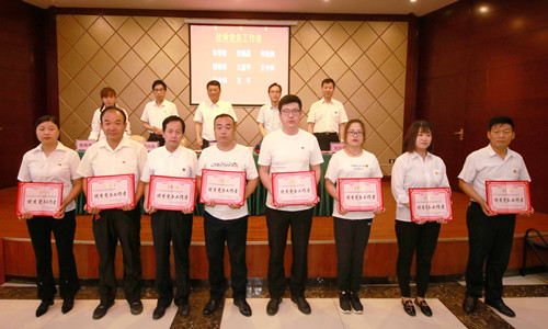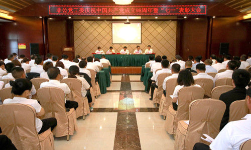 为进一步激发全县非公党组织和非公企业党员职工活力,增强企业党员职工的责任感和荣誉感,促进我县非公经济健康发展,6月28日上午,合阳县非公党工委在四季大酒店七楼会议室召开了庆祝中国共产党成立98周年暨“七·一”表彰大会。会议由非公党工委副书记魏梅香主持,合阳县市场监督管理局局长、非公党工委书记梁涛、县委组织部纪检组长雷伟峰、市场监督管理局党委副书记周向阳、党群服务中心主任党信民及63个非公企业党支部书记和党员代表共计150余人参加了此次会议。