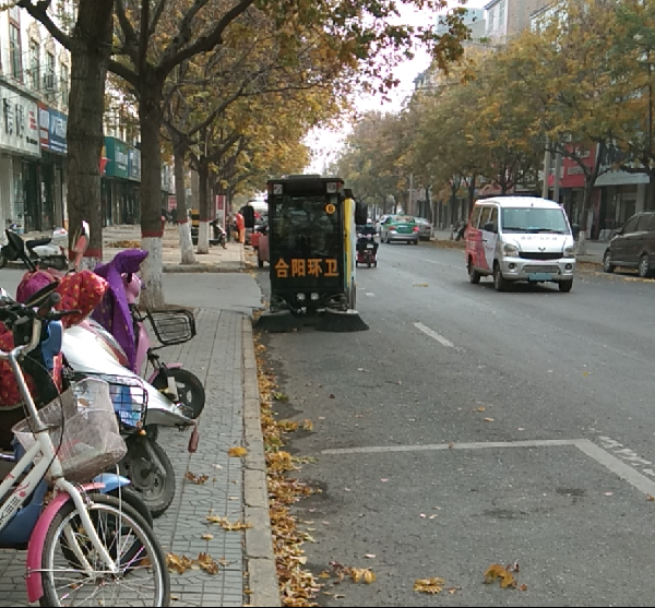 冬季来临,气温骤降,道路两侧植木树叶大量凋落,成为城区环卫工作的重点。为保障居民出行方便,合阳县环卫中心积极行动,采取“人机结合”的作业模式,扎实开展了城区道路落叶清扫工作。