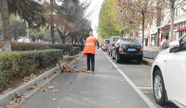 由于树叶重量轻、体积小,且不停飘落,常常是刚清扫完的路面转回身又飘落一层树叶,因此,合阳县环卫中心,将单人保洁调整为两人同时保洁,强化保洁时段的作业力度;同时,将城区路段按人划分,单位在编人员每人包联,在落叶清扫期全天值守,增加巡回清扫频次,协助环卫工人力争做到落叶“随落随清”。