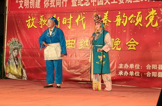 随着表演《绣金匾》音乐的响起,文艺晚会正式拉开了帷幕。说唱快板《扫黑除恶就是好》,宣传了党和国家为了净化社会环境,坚决打击黑恶势力的决心和信心;《赵五娘吃糠》弘扬了中华民族的传统美德;秦腔《洪湖赤卫队》选段,展示了革命前辈不屈不挠的英雄气概。在秦腔传统戏《赶坡》选段时,表演艺术家们粉墨登场、倾情表演,博得了台下观众的阵阵掌声,晚会最终在表演唱《大家喜欢》中落下了帷幕。