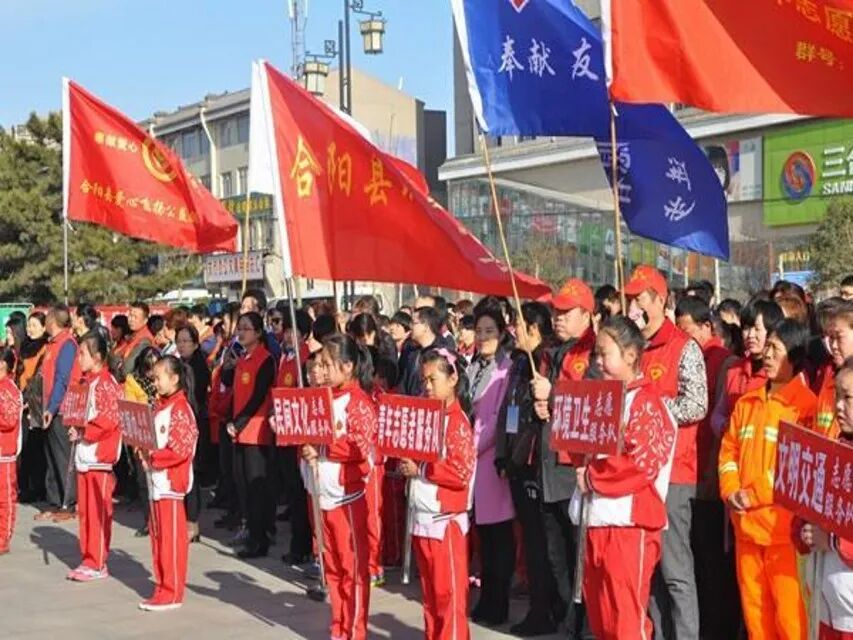 红帽子、红马甲、红袖章、红旗帜,移动在眼前,挥动在空中,穿梭于合阳城乡的大街小巷,鲜红的色彩拉起了一道道文明的风景线,“奉献、友爱、互助、进步”的志愿服务精神更加深入人心,文明礼让、孝老爱亲的新风吹遍了古莘大地。
